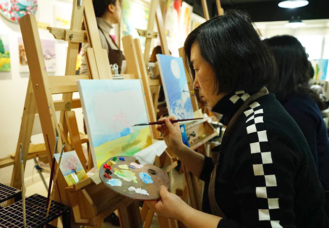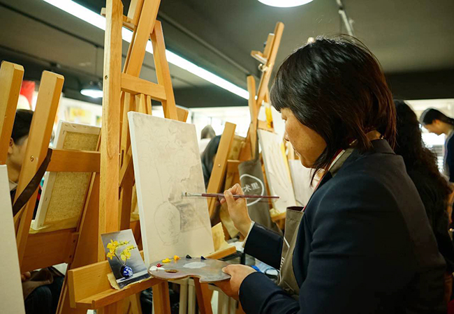 用圖畫裝飾生活,用畫筆記錄美好。盡管公司大部分女員工都并沒有太多的繪畫基礎(chǔ),在作畫的過程中,許多人都碰上了困難,或者調(diào)不出理想的顏色,或者拿捏不準(zhǔn)間架結(jié)構(gòu)。但通過畫室老師的指導(dǎo),以及同事之間的互相幫助,最終完成了一幅幅令人驚嘆的畫作。財(cái)務(wù)部周潔漪的星空?qǐng)D奇幻燦爛、運(yùn)營部徐苒子的櫻花樹夢幻美好、人力資源部總經(jīng)理錢煒的向日葵生機(jī)勃勃,每一個(gè)人都在自己的筆下創(chuàng)造了美好與奇跡。