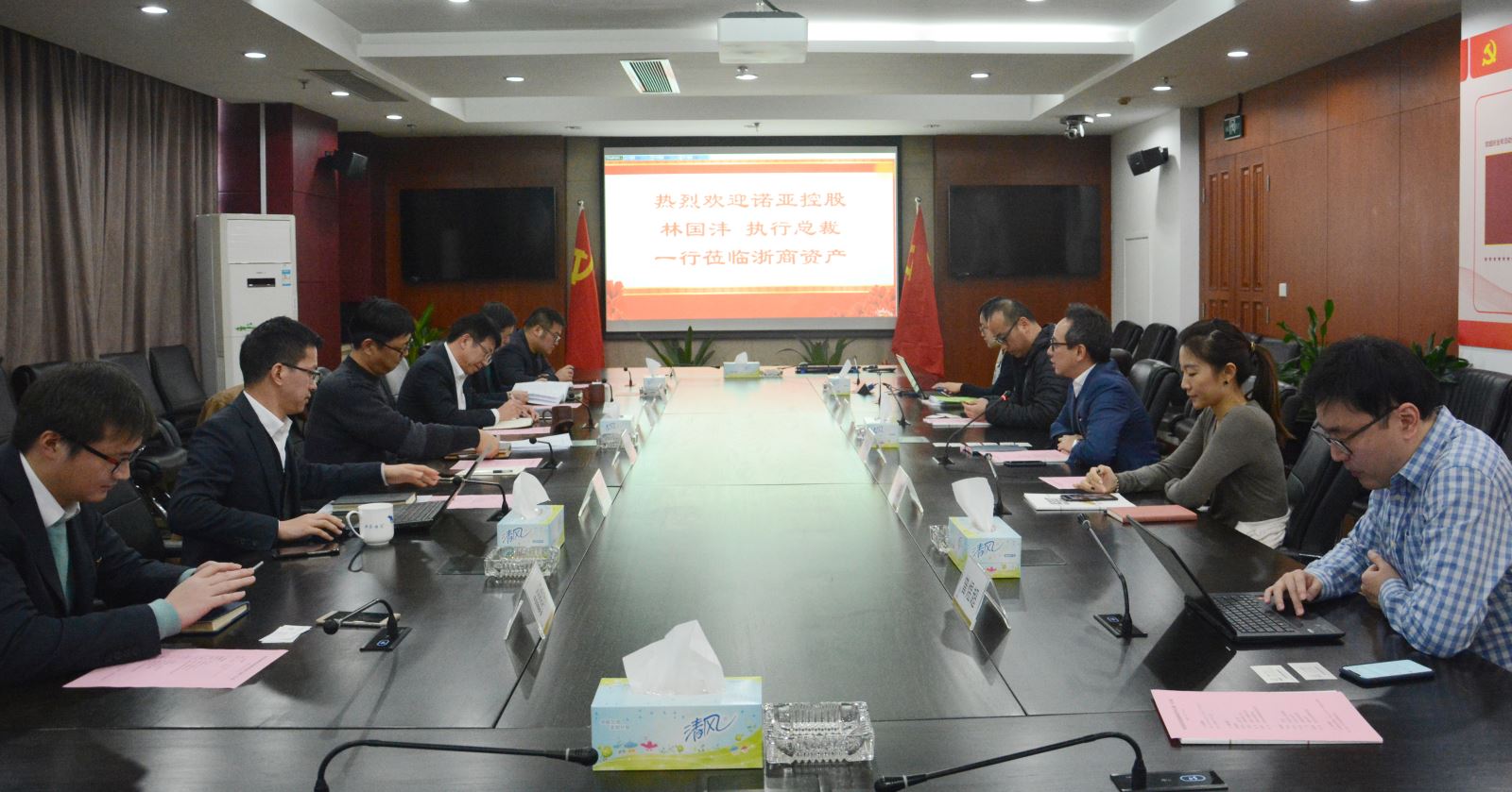 12月19日,諾亞控股執(zhí)行總裁林國灃一行來訪浙商資產(chǎn),公司總經(jīng)理李偉達(dá),副總經(jīng)理、首席戰(zhàn)略官李傳全對諾亞控股一行的到來表示熱烈歡迎。